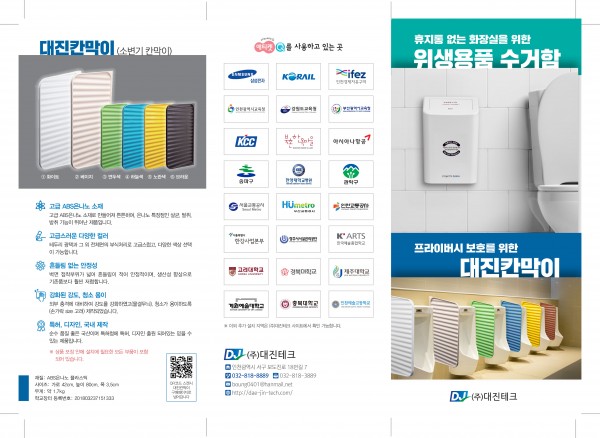 여성위생용품수거함(생리대수거함) 리플렛(카다로그) 첨부 페이지 정보 작성자 대진테크 작성일18-01-08 18:17 조회22,208회 댓글0건 관련링크 이전글 목록 본문 리플렛 이미지를 클릭하시면 자세히 보실수 있습니다. 댓글목록 등록된 댓글이 없습니다. 이전글 목록